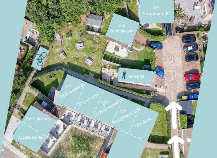 Vogelweelde en De Duinroos zijn onderdeel van een twee-onder-één-kap. De Veldleeuwerik en Windlust zijn de hoekhuizen van de rij. De Duindroom, De Strandleeuwerik en De Boomleeuwerik hebben aan beide kanten buren.